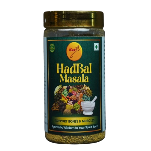HadBal Masala combines bone-strengthening herbs like hadjod (Cissus quadrangularis) with anti-inflammatory turmeric and calcium-absorption enhancers. This formulation supports bone mineral density, joint flexibility, and post-exercise muscle recovery—critical for active adults and aging populations concerned with osteoporosis prevention. The blend addresses asthi dhatu (bone tissue) in Ayurvedic terms while delivering benefits recognized by modern orthopedic research.